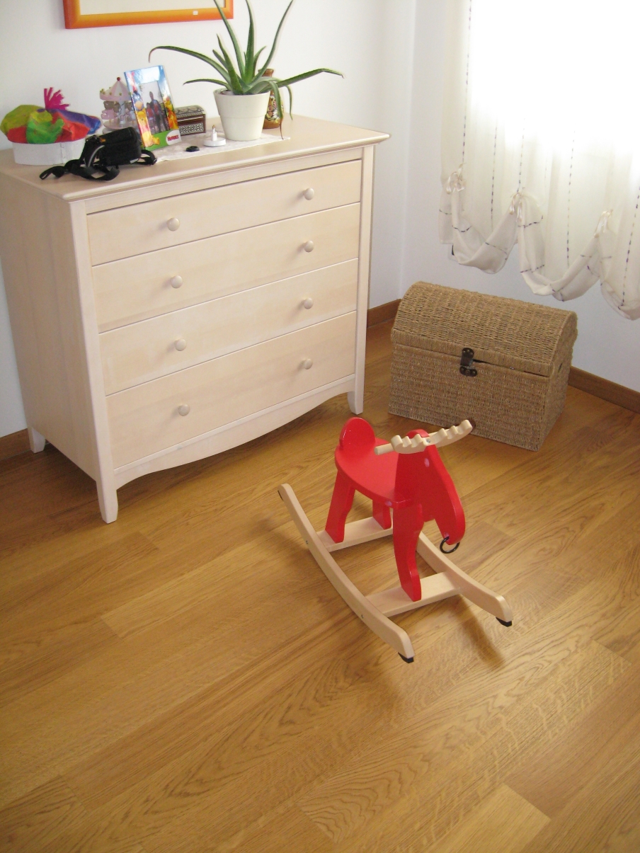 Il parquet verniciato naturale con sistema UV ha una finitura molto resistente indicata anche per le zone ad elevato calpestio.